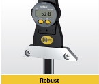 • Water protected for heavy-duty work with coolants and lubricants, protection rating IP67 according to IEC 60529, with or without connector• 4 μm repeatability• Improved accuracy of jaws parallelism • Self-contained use : 12’000 hours continuously• Automatic wake-up by moving the electronic on his frame. (system S.I.S)• Sleeping mode after 20 min. of non use. (system S.I.S)• Position memorized in sleeping mode (system S.I.S)• Maximum velocity of displacement : 2.5 m/sec• Mechanical frame in stainless steel, hardened and grinded• Version with thumb wheel on request• Great comfort of use thanks to its ergonomic frame